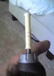 I took the chuck off the tip of my dremel and screwed the bobbin onto my dremel. After that I hand wound the thread around the bobbin for about 3 turns.