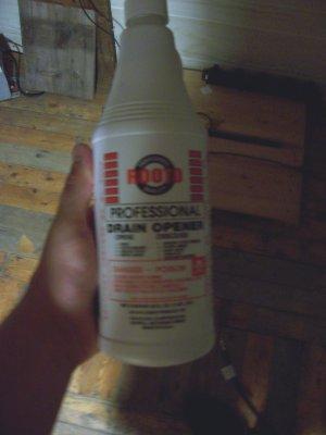 We all get plugged up drains from time to time. Some can be snaked and some can’t. There are several different brands of "pipe cleaner outer" stuff, DrainO, Liquid Plumber etc. My friend and I discovered some stuff called "Rooto" professional drain opener. MMM, good stuff!!! We have often have clogged drains at work and it’s difficult to snake some of them. We decided to give this stuff a try. It goes for about $7.50 a bottle.