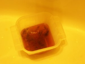 Turned pink & dissolving ---------------------------------------------------------after 10 minutes mostly dissolved