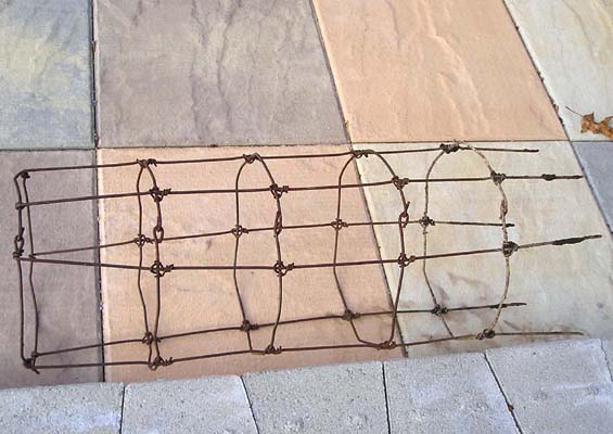 My contribution to the world of tomatoes is made from the wire mesh that is used to reinforce concrete slabs. It is a common item and is available from construction supply depots around the country. What you ask for is 6 X 6 steel mesh. That simply means that the mesh is made up of six inch squares and is generally #10 steel wire. It is available in sheets as well as rolls.