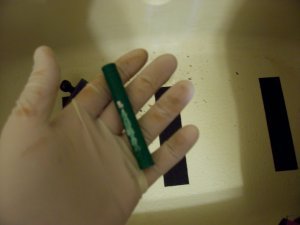 I cleared the hair out and ran the snake in again. I hit against something and managed to bring up a child’s bathtub crayon holder. Gee, I wonder how that got there?