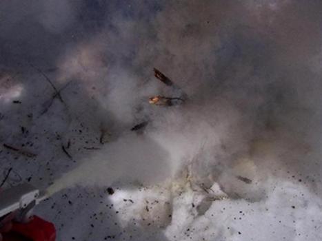 In the below picture you’ll notice the discoloration in the snow toward the top of the picture. That is the dry chem.
