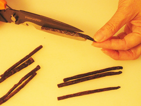 Prepare the beans by cutting them to length to fit the container of your choice. My wife prefers to cut and split the beans, to obtain maximum exposure with the vodka, to get the best end product.