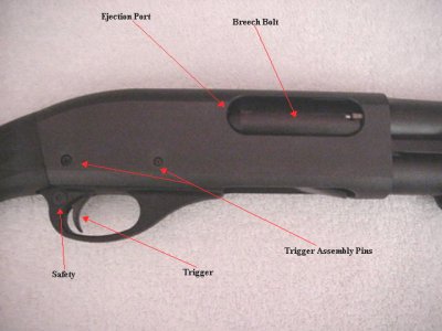6. Pull the slide to the rear. Inspect the chamber to ensure there are no shells in it or the magazine tube.
