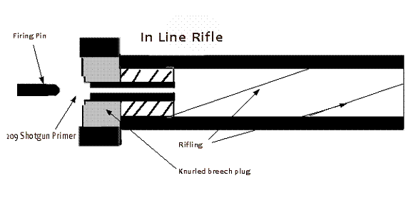 I like shooting black powder, and have been shooting it since 1970. I usually go deer hunting with a percussion sidelock .50 caliber Thompson Center Plains rifle. It is short and handy. But I heard about the new in-line rifles and thought they might be something I would like to try. But I had to save the money to get it. When I was ready a new rifle was on the market. It was an in-line, but it had some special features, it uses a 209 Shotgun primer for the percussion cap; and the barrel breech plug for clean out, removes with a quarter turn of the knurled plug. One may then look down the barrel for inspection and cleaning.