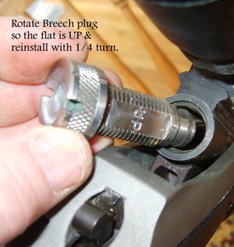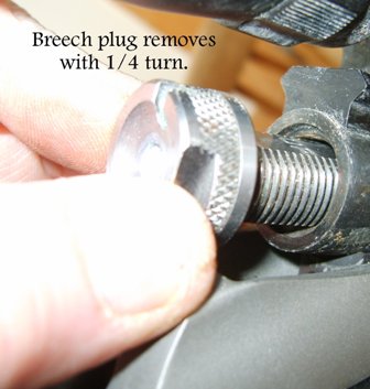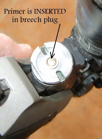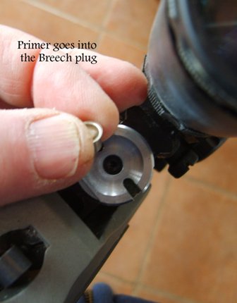 Here you see the primer being inserted in the breech plug. Close the breech and the rifle is ready to fire.