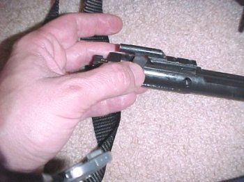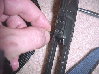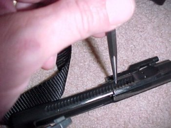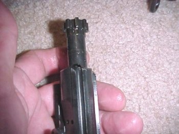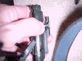 Ok next we want to take the bolt apart. Take a small punch of the tip of a