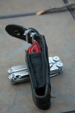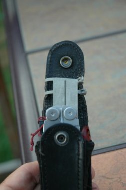 I always like to have something to sharpen my knife blades. You cannot sharpen the Leatherman knife blades with the files in the tool. This is an oversight in design for certain. I found that the inside back of the holster also was a secret compartment. It was as wide as the tool and just as deep. I could easily slip a diamond sharpener into this pocket.