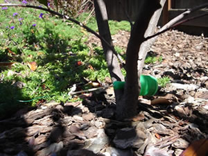 I tested them out on myself and they seemed to work really well. And they were extremely easy to setup because all you had to do was place it in between two branches like in the pictures below. The next time I went back to my fishing spot, I setup the tripwires on the main trails into the fishing area. I didn't have any real military tripwire at the time so I used a small string and coated it, and party popper, with mud from the pond. I also covered the party popper with leaves to better camouflage it. It was pretty hard to see even if you were paying attention.