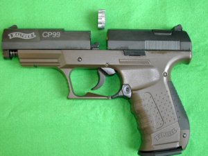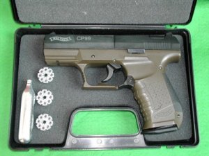 I fell in love with the CP99 almost at first sight, made by the Umarex group, in Germany, of which Walther is a part is has the same weight and feel of its firearm brother the Walther P99, so I am told.