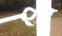 7. Put another section of string in the bottom set of eye bolts. This loop will hold the target in place and stop it from swaying if a breeze comes along (as in the photo above).