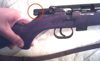 Now open the bolt and inspect that the chamber is empty. Now that we KNOW it is unloaded depress the release lever at the front of the button on the left side of the receiver...now gently slide the bolt out free of the rifle.