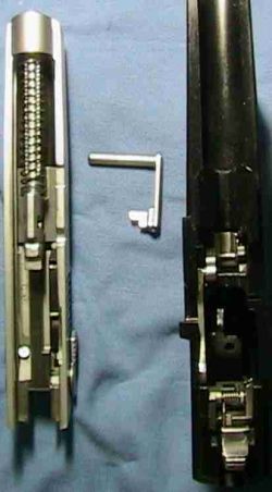 There have been a few models of P97’s that have a tendency to loose their slide stops during firing causing the gun to disassemble. Ruger analyzed this problem and determined that some guns made it out the door with incorrect geometry on the camblock. No need to worry though. If during your testing of this model (and you’d better be testing your gear) give a call to Ruger. They’ll send you out a new redesigned camblock and slide stop lever free of charge.