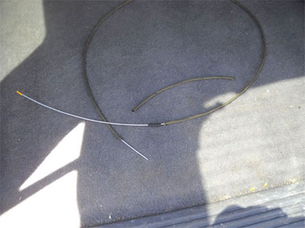Wrapping the cut end of the cable makes sliding the Para cord over a lot easier. Leave a small tail past the cable end and crimp it shut to form a stop, otherwise you may find that the tape will slide over the cable with the Para cord sheath. It also prevents a wire splinter from snagging on the sheath or your fingers. The sheath slides fairly easily, but if you get hung up you may need to work the sheath like a Chinese finger trap to create some room.