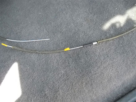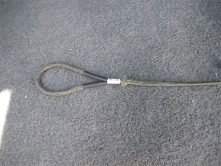 I decided to make a security lanyard. The lanyard was made with 1/16” wire rope covered by Para cord to hide the steel cable. I started with a 4 foot length of 1/16” steel cable from Home Depot. It has a breaking strength of 120 lbs. The gutted Para cord is cut shorter to allow for the eye splices.