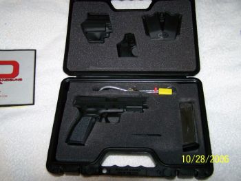 This is my experience with the Springfield XD in the 40 caliber. First let’s establish the fact that I am not a professional gun writer, just another blue collar worker that scares the hell out of the liberal left. I was looking for a handgun for concealed carry. I did not know what I wanted as my only experience with handguns was with a Taurus 92F and I did not want one. I find that their grips are too fat for my hands. I spent some time looking through a buddies back issues of Gun Test Magazine and saw a review of the H&K USP. I thought I was on the right track until I saw the price tag. I cannot justify spending $700 plus for a handgun that most likely will be confiscated if I am involved in a self defense shooting. I was still looking when my brother told me to look at the XD line from Springfield Armory. I went looking and liked what I saw. Currently Springfield Armory is offering the XD in a 3" subcompact, a 4" Service Model and a 5" Tactical. This is a Polymer Handgun with your choice of either Black, Green or Tan frames. The XD is offered in the 9mm, the .40 caliber, .45 GAP and most recently the venerable .45 AUTO. There is also a factory ported 4" but I have only seen it once. I did my research and since I was looking for a handgun that I could conceal and also wear in a drop leg rig at the deer lease I purchased the 4" Service Model with a black frame as the green frame was only offered in the 3" subcompact. The asking price was $479.00 with 2-12 round extended magazines. I finalized the deal for $439.00. The XD comes in a hard plastic carrying case that has is emblazoned with Springfield Armory on the side. It could pass as a cordless drill case but Springfield ruined any chances for an untactical carry.