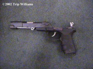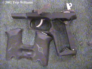 One day it dawned on me that I wasn't carrying any of my "Nicer Guns" at all! The Ruger always seemed to be with me. Then The Brady Law went into effect and suddenly my Ruger was a "Pre-ban weapon", one that could still accept a high capacity mag. At that time, the Ruger was back to rusting under my truck seat, so I cleaned it up. The Ruger had seen many years of hard abuse by this time (Roughly 1999) so I asked a friend to Bead blast it and give it a new bluing... Instead he gave it a matte black Teflon coating. Talk about a new life!!! With the new look also came a new ease of maintenance. With the Teflon coating, you don't have to oil it, and most parts simply wipe clean. If you know someone that can do this, have it done, you'll love it! (Please, don't write and ask if my friend will Teflon Coat your weapon, he won't.)