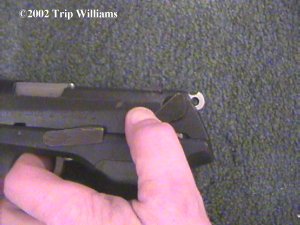 The "DC" in "P89 DC" stands for "Decocking". The P89 has no safety, so after racking a round into the pipe you need a way to safely lower the hammer. When you push down on the Decocker with your thumb, the firing pin is blocked so that the weapon can't fire while the hammer drops. Intellectually I know it can't fire accidentally, I know how the block works etc, but Mr. Murphy is ever-present, so NEVER trust ANY decocking mechanism! ALWAYS point the weapon in a safe direction when using the decocker! I had a young friend once that thought it would be funny to rack a round into his P89, point it at my head and hit the decocker... The firing pin disconnect works, cause the Ruger hit the floor without firing shortly after he did... that kinda crap aint funny. Unsafe weapon handling is not something I tolerate at ANY time.. not even once.