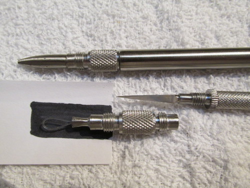 The pic below show the tips removed from the handle ready to be reversed and installed back into the handle. The nylon loop pick-(I colored a piece of paper black to highlight the loop).