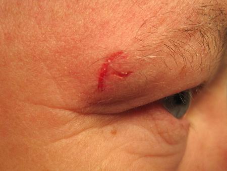 Picture, taken after the bleeding stopped, shows the lacerations that could have resulted in a permanent eye injury had it made contact with the eye.