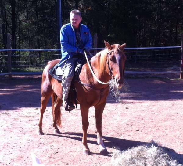 OK, OK... that's more like, Three or Four words... but you get the point... I learned THAT trick from my Sainted Grandmother, and my Sainted Mother, Except that Mimi and Grandma used to make *ME* go out and GET MY OWN switch so they could MAKE *ME* MOVE! But it works on Horses just as well as it works on willful boys... and at least *I* brought a switch with me today so that Bandit didn't have to go get a switch himself ;)
