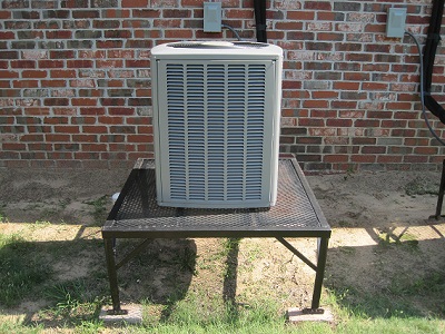 The reason for this is to get the unit off the ground where the coils will remain cleaner and not be directly exposed to dirt and grass clippings from a lawn mower or a weed eater.