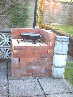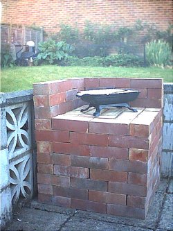160 were dry laid (without cement) to produce a corner stand for the hibachi, which can now be used with ease and when required the bricks are available. The stand could of course be larger or longer to store more bricks in an orderly and useful way.