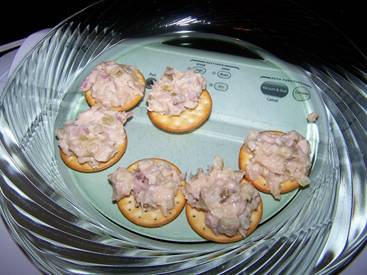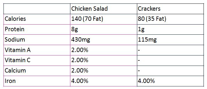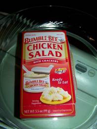 Contents of package; 6 crackers and 1 can of chicken salad.