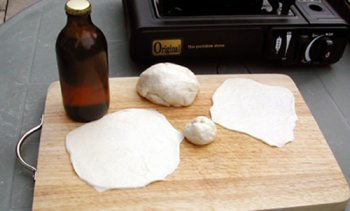 Roll it out pretty thin. You could now just chuck it on the hot coals of your camp fire but today I will do mine in a mess tin on a camping stove.