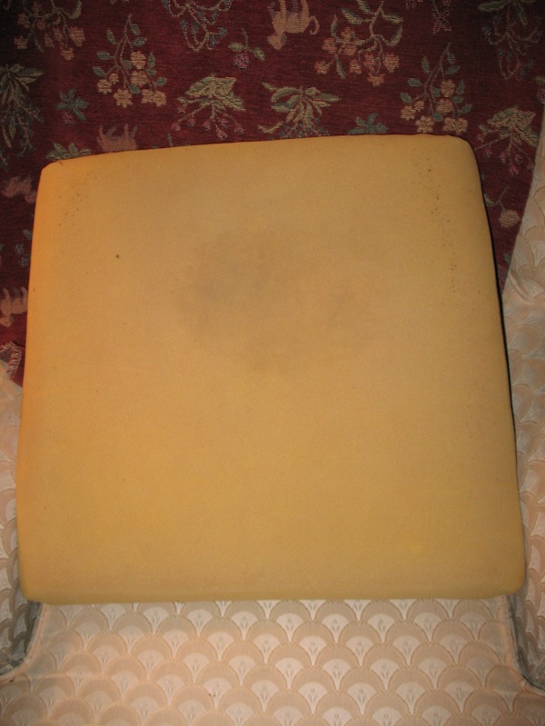 Once you have the fabric off, you will see the cushion material. It might be foam or cotton batting or (on really old chairs) even horse hair or a combination of materials. If you find horse hair padding, I would recommend re-using it because it is very durable and has a reputation for repelling fleas and bed bugs. Depending on the condition of your padding, you might want to replace it or add to it. The chairs I used had good foam padding that wasn't worn out, so I opted to re-use the padding.