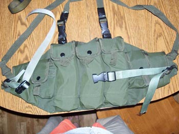Possible future additions are velcro for nametags, bloodtype, etc, pocket in back to holds maps, ALICE first aid pouches sewn to the front for more storage and so on. I'm still deciding, but as is this provides the basics for utilizing my AK-47.