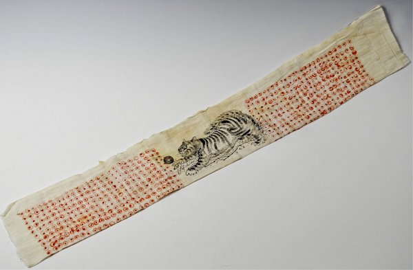 A well-preserved example of the senninbari or "thousand stitch belt" most Japanese soldiers were given while away on active service.