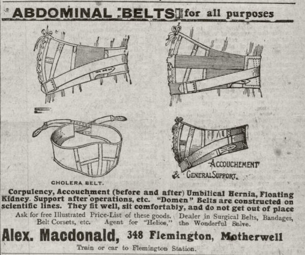 Cholera belts at the turn-of-the-last-century were manufactured by the same firms that made hernia trusses and other supportive garments.