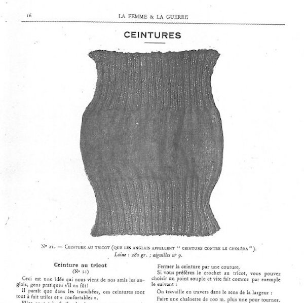 From a booklet of knitted items for French women to make for their men in the army in WWI, complete with instructions.