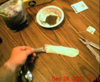 This you will remove with the pliers, prying apart one tiny arm at a time. You could just rip it out but you want your finished product to have a workmanlike appearance, so take your time. It’s not difficult and comes out with next to no effort. Drop it in the dish or paper plate.