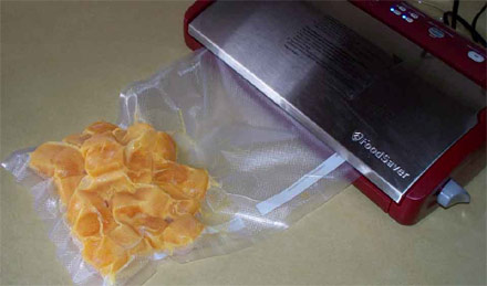Don't they look just awesome? I love how rich and golden they look. The next step was to vacuum seal them up. We decided to seal them in batches of six, and a dozen complete eggs. (12 and 24 cubes)