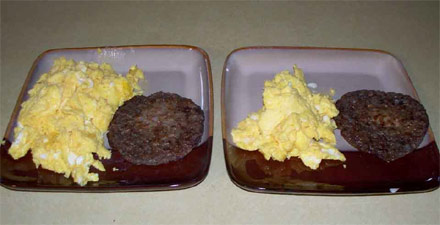 When I posted my initial trials on the Back to Basics boards there was some great feedback on how to use the eggs. One method for camping was to place the eggs in a boilable bag and store them in your ice chest. Then, when you want to use them, open up the bag and throw in your ham, cheese , onion, mushrooms or whatever. Then toss in a pot of boiling water for exactly 13 minutes. Out comes a perfectly cooked omelet. I haven't tried it yet, but it sounds great.