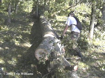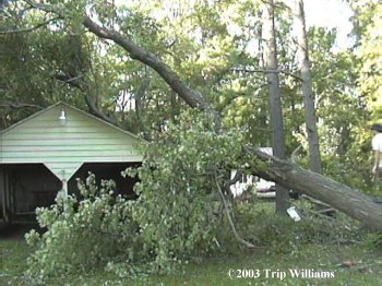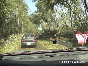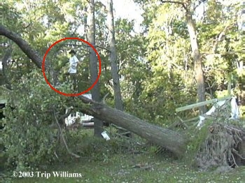 ...Then FINALLY getting to Twist's house, and finding HUNDREDS of HUGE old trees down.. some laying on buildings and power lines and making roads totally impassable... Some hanging over houses and such that couldn't just be cut away, but had to be climbed, and from there cut up carefully and then lowered to the ground one piece at a time with ropes and chains...