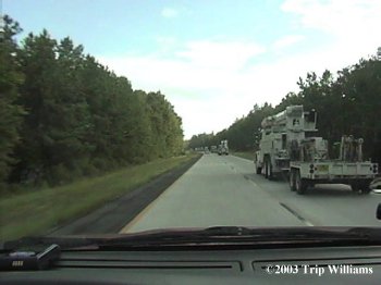 Things were fine until I crossed into VA from NC On I-85.. immediately I lost cell reception and the first store I came to had no power... I had filled up the truck just before getting into VA, and I had several full gas cans with me, so this wasn't a problem.. I expected it and was prepared for it... That station in NC was the last place with gas from I-85 to the coast... EXCEPT for one store with a generator and a half mile line of cars and trucks in BOTH directions... Incredible. There were cars out of gas, cars with trees and power poles sitting on them IN THE ROAD the whole rest of the way.