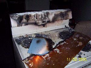 I got looking around the next day and the smoke alarm in the apartment was also melted. It was located on the opposite side of the wall from the stove. There was A LOT of heat in there. Everything is smoke damaged and the apartment has to be gutted and refinished.