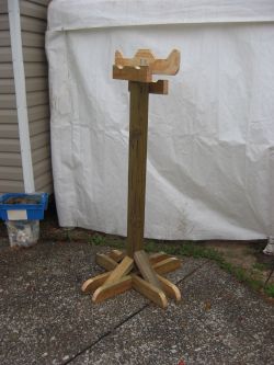 You can build this thing any way you wish. I almost hesitate to mention a specific design cause most anything will do. I measured and cut notches in the four 32" boards so they would interlock around the base of the 4x4 post. I also rounded the end corners to make it a little more "toe friendly".