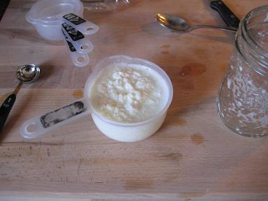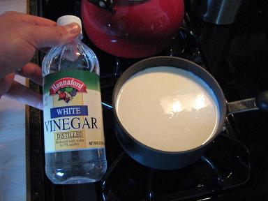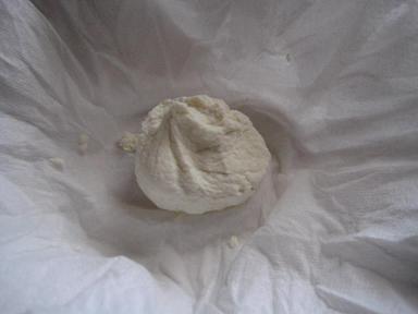 How do we make Casein plastic? First I poured 3 cups of milk into a pot and placed it on the stove on high heat. I then added 2 tsp of distilled white vinegar for each cup of milk (a total of 6 tea spoons full). I stirred this and immediately saw the separation of the curds from the whey. The whey is the cloudy liquid that is left behind and the curds are the solid material that floats to the top. I placed a paper towel in a strainer and poured the pot through it to capture all the solid curds. I placed the curds in a measuring cup and determined that I had obtained almost one full cup of curds from the original 3 cups milk.