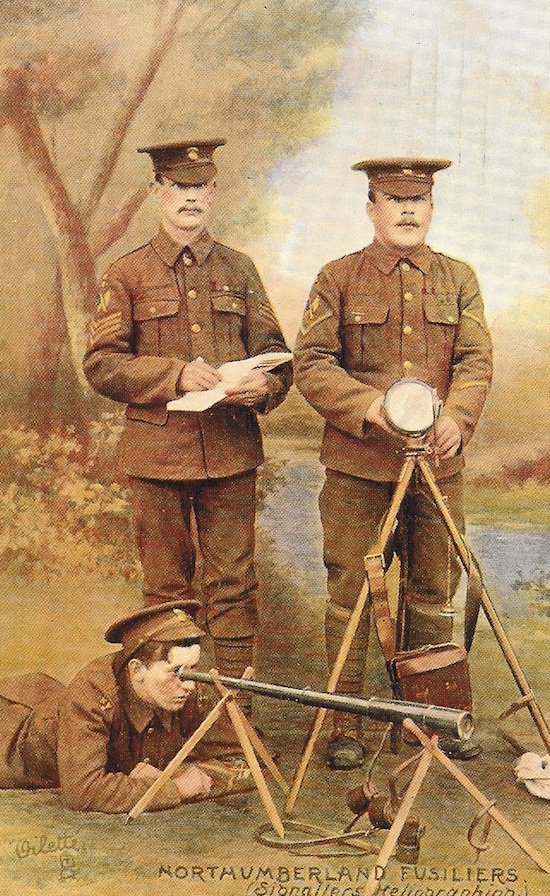 Being fundamentally lazy, I took my hint for a pair of tripods from the posed and retouched photo of the Northumberland Fusiliers