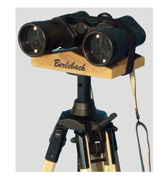 As for those of us who want to hold binos up with something more stable than their wrists or elbows, this image is instructive - I suspect even I could make something like this out of a block of wood, a velcro strap and a metal screw-thread insert.