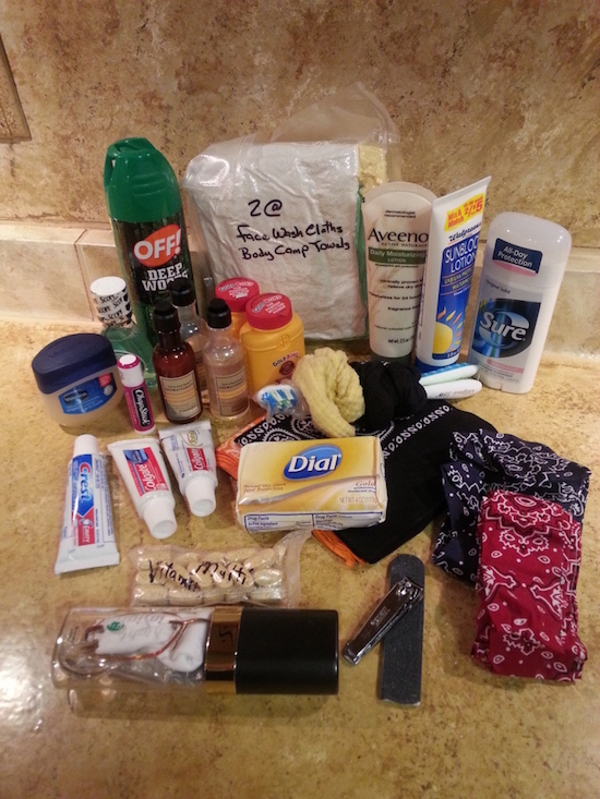 After our flood, the water treatment plant shutdown service until they were sure all water lines are clear and safe. This took more than a week so we were only able to use the water we had stored. After a week of sponge baths, I was craving a real shower. So I includes a wash cloth and large camp towel each for Hubby and I, bar soap, shampoo & conditioner and an outdoor solar shower. I purposely chose items that smell heavenly. If a muddy mess comes your way, you'll be happy with the various sweet smells of clean.