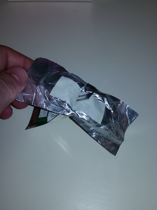 If necessary, reverse the blade and carefully stick it back in the foil, leaving as little of the non-working body of the blade as possible. Fold the ends of the foil straight back.