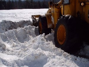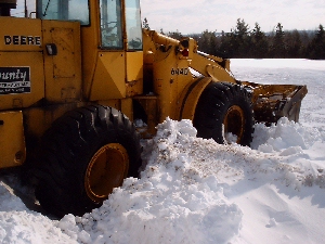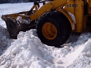 My road on the west side is famous for drifting in. The plow crew uses a pay loader to dig through the deep drifts. For smaller amounts a regular plow truck is used.