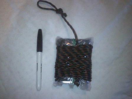 On the outside you can see 13 feet of 550 cord, inner strands were kept in. It's next to the marker for a size comparison.