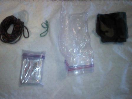 Once you strip off the 550 cord, you see a rubberband holding a 1 qt Ziplock bag on and helping to compress it so that the 550 cord wraps more uniformly.