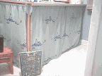 - Don't have doors on our bathroom cupboards, as you can see, so I stenciled some curtains (made out of an old sheet) with lighthouses. The scale you see in the picture was a cast off from someone. It was all rusty and missing the nice covering that goes on top that you stand on when you weigh yourself. I sanded it up, spray painted it then took fabric, that matches the bathroom curtains, cut it to shape, then ironed it onto the sticky side of clear contact paper then I glued it onto the scale.
